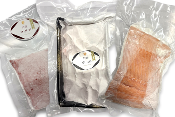 - 魚はプロトン凍結技術で急速冷凍し、水揚げ時の美味しさをそのままに、心を込めて全国へお届けしています。
